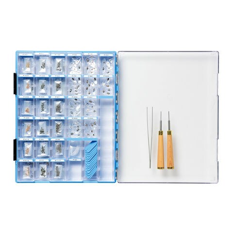 ネジ・パッドなど、使用頻度の高い部品のみを47点選びました。多数の部品と木製ドライバー、ピンセットをコンパクトなケースにまとめています。