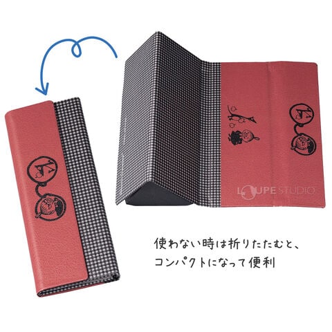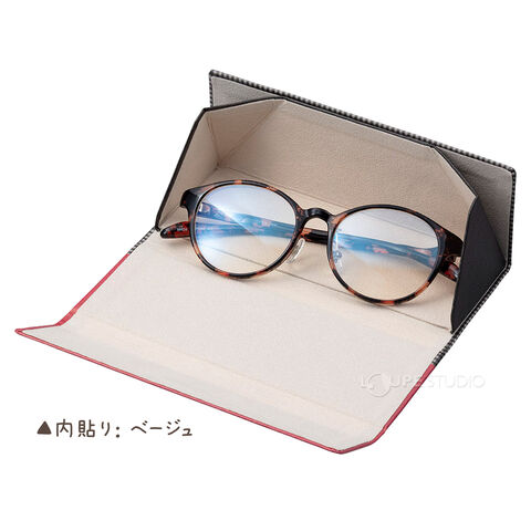 こちらは大人気アイテム[折りたたみメガネケース]!折りたたみタイプなので使わない時にはコンパクトにできるので持ち運びに便利!ハードタイプでカバンの中でも安心!プリント入りのかわいいメガネ拭きも付いています。