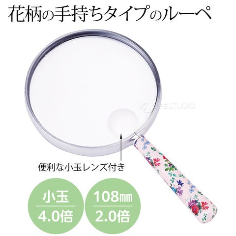 ルーペ 拡大鏡 2倍 かわいい おしゃれ 女性 手持ち式 レンズ経 10cm プラルーペ フラワー PP888-110A PI 小玉付(4倍) 花柄 読書 小さい文字 大きく 老眼 敬老の日 スペック