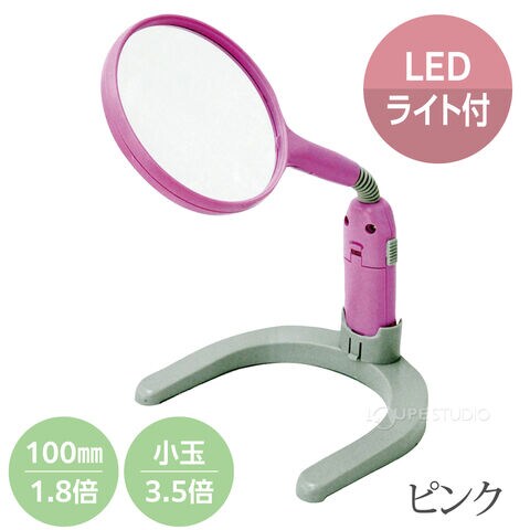 拡大鏡 虫眼鏡 ルーペ LEDライト付き スタンドルーペ 手持ち&卓上拡大鏡 KSL-108 1.8倍 100mm 小玉付き 3.5倍 ブラック ピンク 角度調節可 単3電池式 老眼 敬老の日