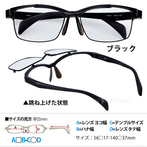 跳ね上げ フレームのみ メガネ はね上げ 枠 フルリムタイプ メンズ レディース 掛け外し不要 便利 眼鏡 老眼 サングラス 軽い ダークグレー ネイビー ブラック HA-111-56 スペック