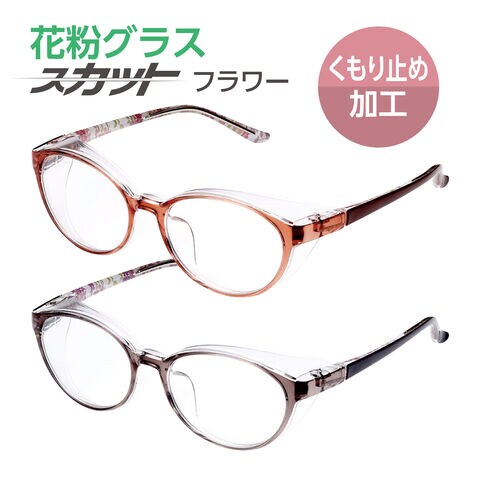 花粉グラス 花粉メガネ 保護眼鏡 UVカット レディース スカット フラワー ピンクブラウン ライトグレー SFL-001 くもり止め加工 花粉症対策 黄砂 PM2.5 目 保護 予防 防塵