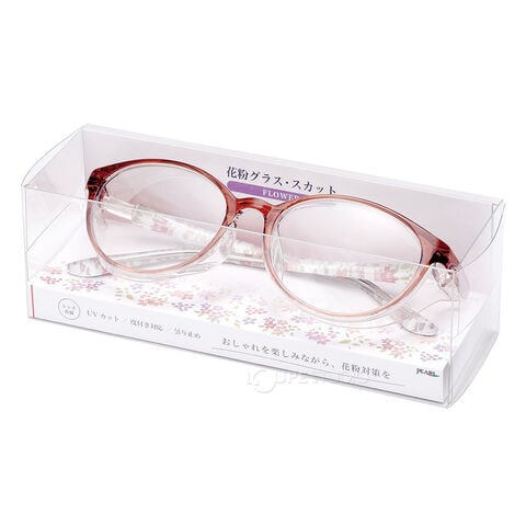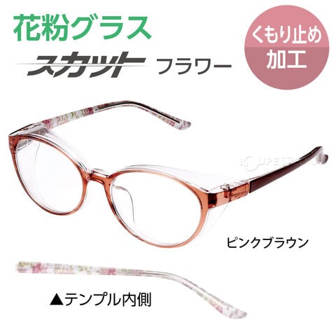 花粉グラス 花粉メガネ 保護眼鏡 UVカット レディース スカット フラワー ピンクブラウン ライトグレー SFL-001 くもり止め加工 花粉症対策 黄砂 PM2.5 目 保護 予防 防塵スペック