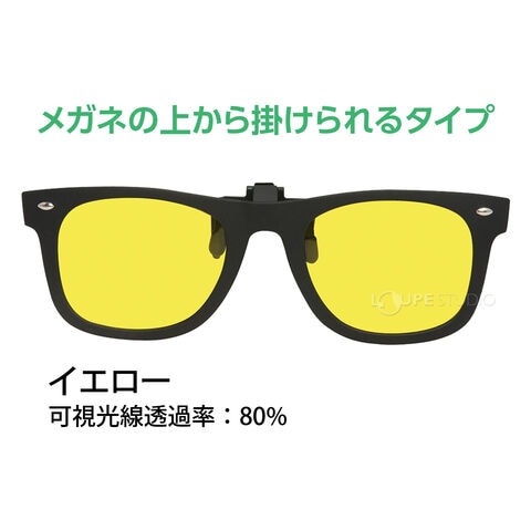 ドライビンググラス DSC02 クリップ オン イエロー 運転用 サングラス 眼鏡の上から メガネに付ける 西日 夜間 ヘッドライト 眩しさ軽減 紫外線 対策 ドライブ 黄色 レンズスペック