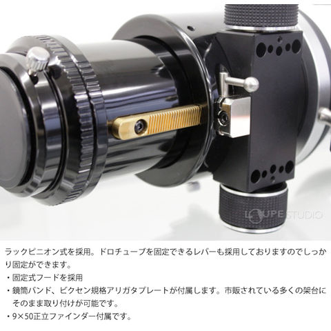 - エアスペースタイプ3枚玉EDアポクロマートを採用した天体写真撮影に優れた性能を発揮する鏡筒です。