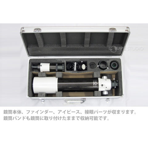 付属品アイピースLET28mm(2インチ)、2インチ天頂ミラー(31.7mmアイピースホルダー付属)、Tアダプター、鏡筒バンド、ビクセン規格アリガタプレート、アルミケース