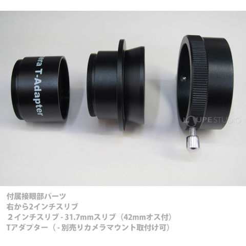 • Tアダプター(42mm)が付属していますので、別売りカメラアダプターを取り付けるだけで直焦点撮影が可能です。