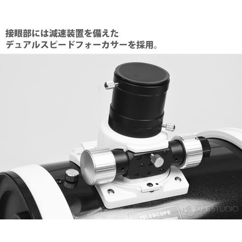 - 接眼部には減速装置を備えたデュアルスピードフォーカサーを採用。眼視での観測はもちろん、写真撮影時のシビアなピント合わせも楽に行えます。