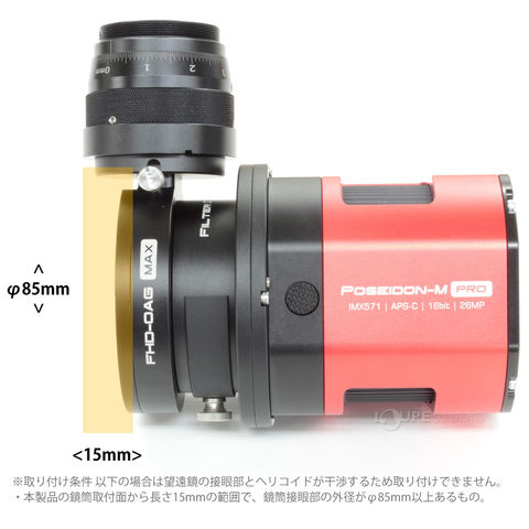 同社製 Phoenix M48 電動フィルターホイールもしくはフィルタードロワーMAX と組み合わせてカメラと望遠鏡に取り付けます。