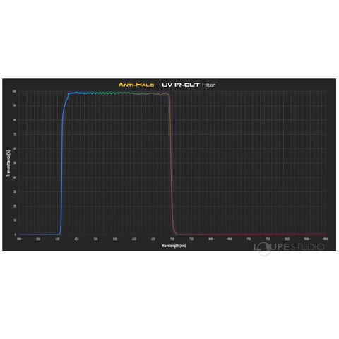F1.4よりF値の大きい光学系すべてに使用可能で、400nm~700nmの可視光を95%以上透過し、カットされる波長の光の透過率は0.0001%(1万分の1)以下です。