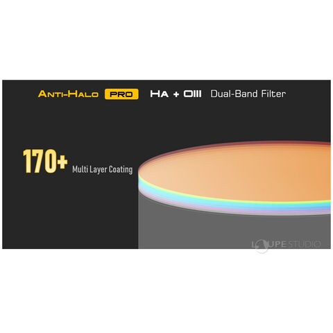 フィルターによって発生するハロを抑える「Anti-HaloPro(アンチハロ・プロ)」設計のデュアルバンドフィルターです。Player One独自のコーティング設計により、明るい星の周りに発生するハロ(光輪・にじみ)を低減します。これにより、恒星像はよりシャープになり、写真のクオリティ向上が期待できます。