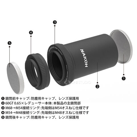 - 「60GT 0.65×レデューサー」は、NAKOH 60GTのために専用設計された0.65倍レデューサーです。
