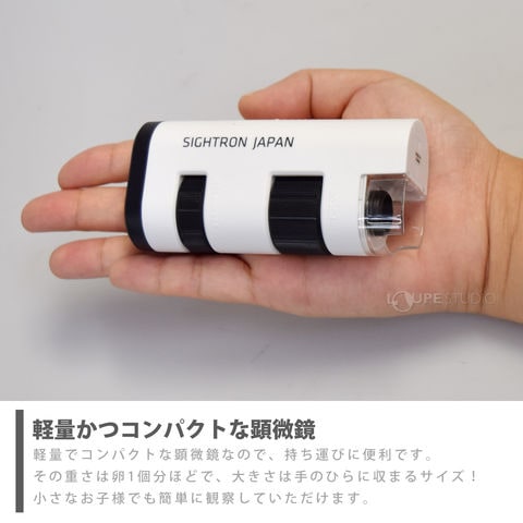 手のひらサイズの軽量コンパクトなポケット顕微鏡!