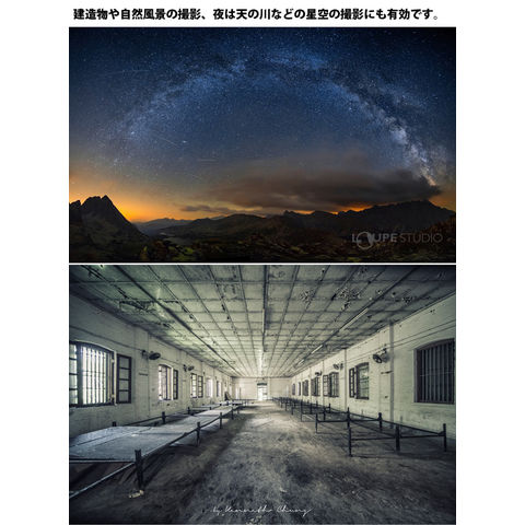 • 建造物や自然風景の撮影のほか、夜は天の川などの星空の撮影にも最適です。