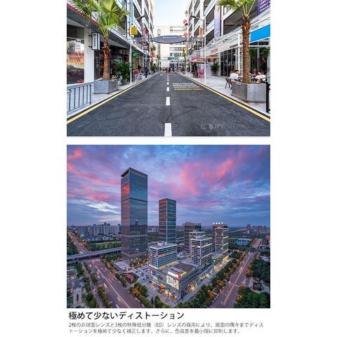 - 114°もの超広角な画角にもかかわらず、極めて優れたシャープな画像を提供します。極めて広い画角により、新たな写真表現が可能です。