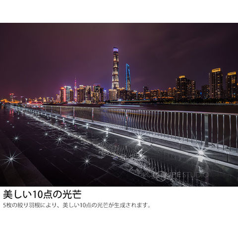 - 5枚の絞り羽根により、美しい10点の光芒が生成されます。