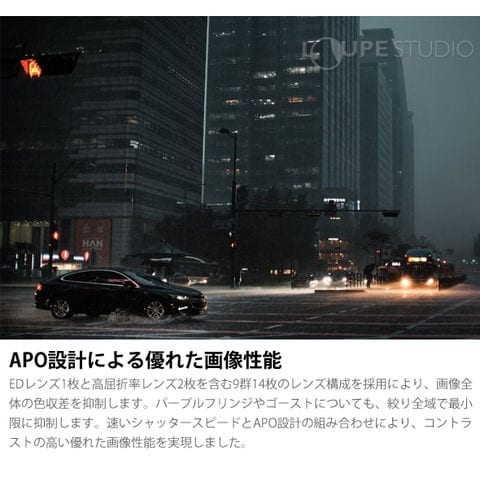 色収差を最小限に抑制するAPO設計のAPS-Cミラーレスカメラ用レンズ。