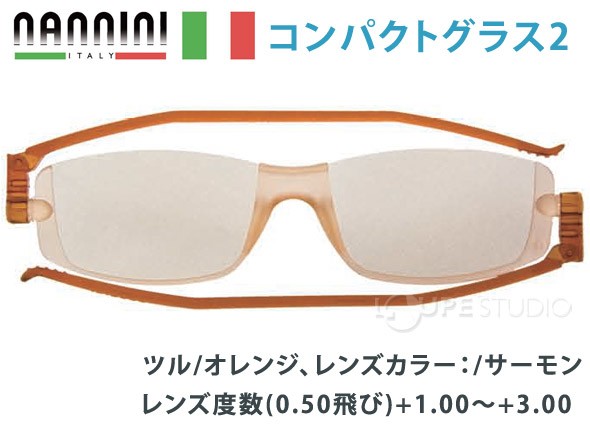 老眼鏡 おしゃれ オレンジ シニアグラス メンズ レディース 折りたたみ 軽量 めがね メガネ 眼鏡 度付き 度入り 度あり 安い ナンニーニ コンパクトグラス2 コンパクトグラス 女性 男性 40代 50代スペック