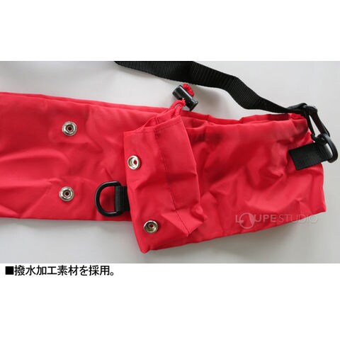 ※2個のスナップを止めるとポールケースが二つ折りになり、短くして3段式を収納できます。
