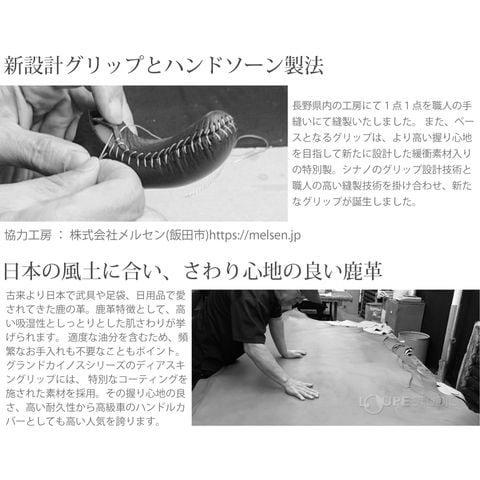 | グリップ | 本革(鹿)+ネオプレーン+PP |