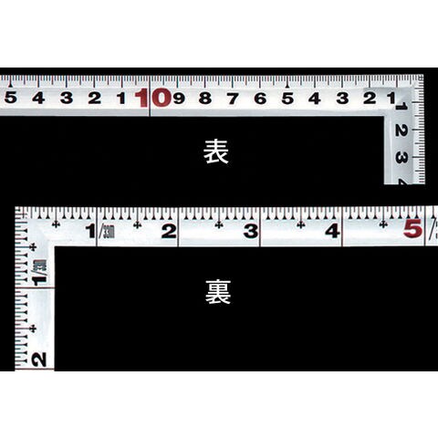 | 仕様 | ■精度 ●直角度:100mmにつき、0.1mm以下 ●長さの許容差:±0.2mm以下 ■表目盛 ●長枝:外目盛30cm ●短枝:外目盛15cm ■裏目盛 ●長枝:外目盛1尺 ●短枝:外目盛5寸 ■表示 ●赤数字入 ■形状:角厚 |