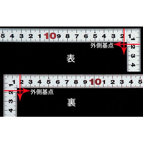 | 仕様 | ■精度 ●直角度:100mmにつき、0.1mm以下 ●長さの許容差:±0.2mm以下 ■表目盛 ●長枝:外目盛30cm 内目盛25cm ●短枝:外目盛15cm 内目盛10cm ■裏目盛 ●長枝:外目盛30cm 内目盛25cm ●短枝:外目盛15cm 内目盛10cm ■表示 ●JISマーク ●赤数字入 ■形状:同厚 |