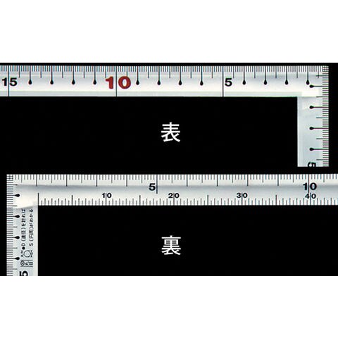 | 仕様 | ■精度 ●直角度:100mmにつき、0.1mm以下 ●長さの許容差:±0.2mm以下 ■表目盛 ●長枝:外目盛30cm ●短枝:外目盛15cm ■裏目盛 ●長枝:外目盛角目 内目盛丸目 ●短枝:外目盛15cm ■表示 ●JISマーク ●赤数字入 ■形状:同厚 |