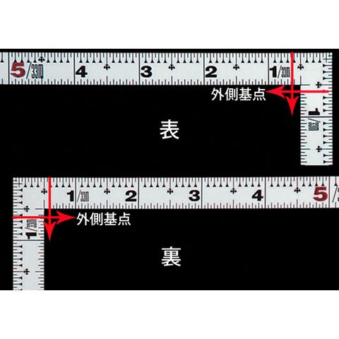 • 角が薄く平たいので細かい材料にもピタリと張り付き、ケガキやすく測りやすくなっています。