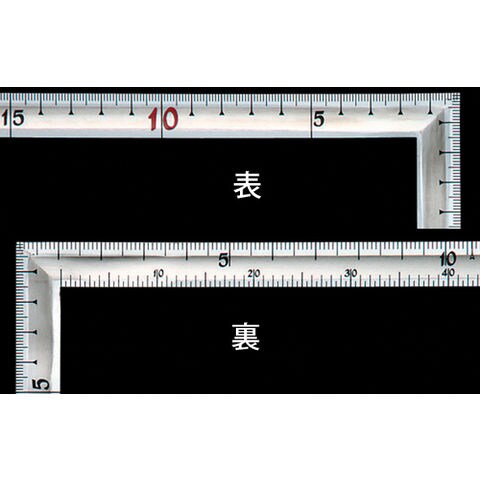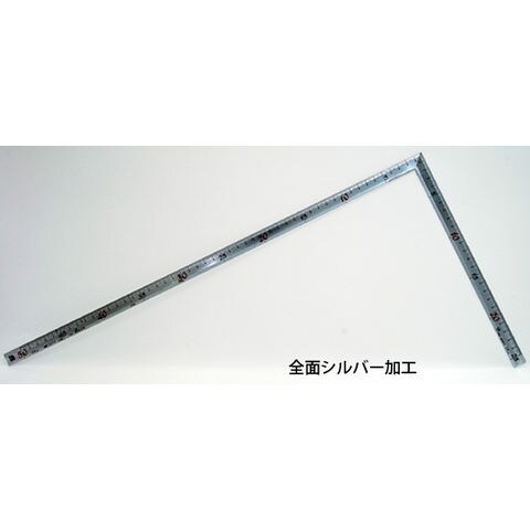 | 仕様 | ■精度 ●直角度:100mmにつき、0.06mm以下 ●長さの許容差:±0.2mm以下 ■表目盛 ●長枝:外目盛50cm ●短枝:外目盛25cm ■裏目盛 ●長枝:外目盛角目 内目盛丸目、ホゾ ●短枝:外目盛25cm ■表示 ●JISマーク ●赤数字入 ■形状:高級角厚 |