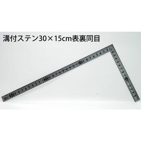 曲尺小型 溝付 ステン30×15cm 裏面角目 12017 かねじゃく さしがね 定規 ステンレススペック