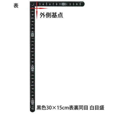 曲尺小型 サンデーカーペンター 黒色 30×15cm表裏同目 白目盛 12435 かねじゃく さしがね 定規 ステンレス シンワ測定