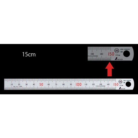 直尺 ステン 15cm赤数字入 JIS 14001 ステンレス ステン スケール 定規 シンワ測定
