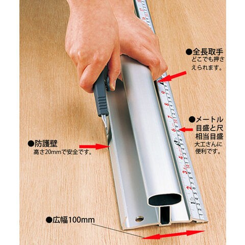 アルミカッター定規 カットレール 1m 併用目盛 65077 定規 カッター定規 ステン鋼スペック