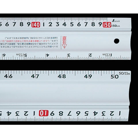 | 仕様 | ■目盛 ●測定面:メートル目盛 ●カッティング面:尺相当目盛 ■長さの許容差:±0.55mm ■真直度:0.50mm ■赤数字入 |