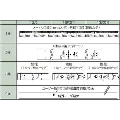 尺杖 13尺5寸 併用目盛 65133 定規 直尺 アルミ定規 アルミ製 大工道具 スペック