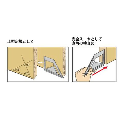 - 45°合わせ、直角検査に使用する止型スコヤ