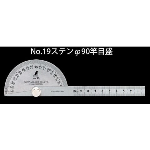 プロトラクター No.19 ステン φ90 竿目盛10cm 62499 ステン ステンレス 角度計 測量 大工道具 工具 シンワ測定