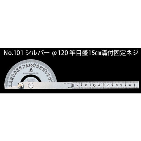 プロトラクター No.101 シルバー φ120 竿目盛15cm溝付固定ネジ 62868 ステン ステンレス 角度計 測量 大工道具 工具 シンワ測定