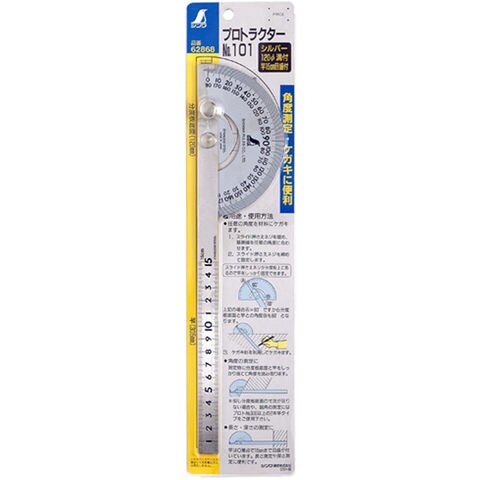 プロトラクター No.101 シルバー φ120 竿目盛15cm溝付固定ネジ 62868 ステン ステンレス 角度計 測量 大工道具 工具 スペック