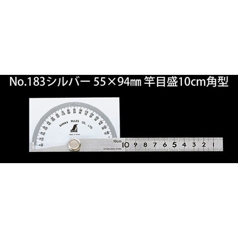 プロトラクター No.183 シルバー 55×94mm 竿目盛10cm角型 62928 ステン ステンレス 角度計 測量 大工道具 工具 シンワ測定