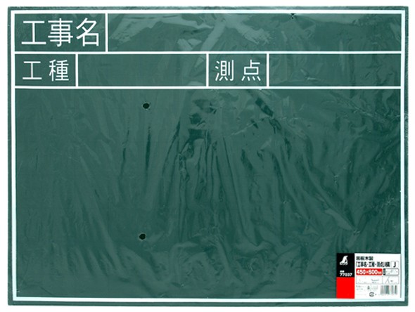 | 仕様 | ■仕様 ●印刷:工事名・工種・測点 ●横型 ■サイズ:450mm×600mm ■付属品:黒板消し、チョーク3本 |