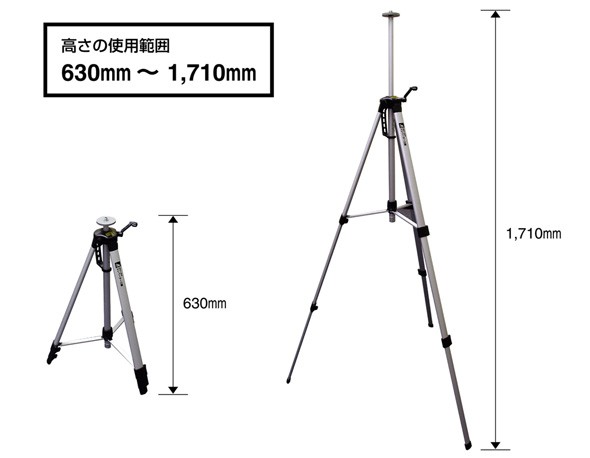 - 屋外での作業やレーザー墨出し器の高さを上げる時に使用する三脚