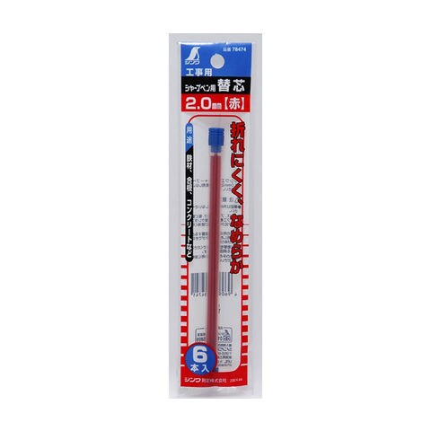 消耗品 替芯 シャープペン用 赤 2.0mm 工事用 6本入 78474 建築用 大工道具 基準出し 工事用シャーペン シンワ測定