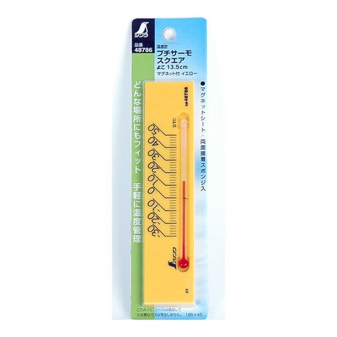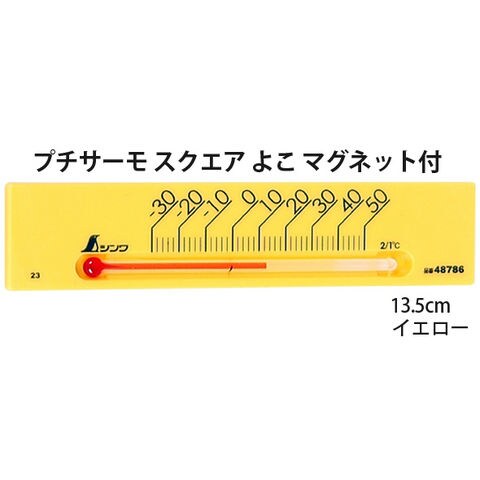 温度計 プチサーモ スクエア よこ 13.5cmマグネット付 イエロー 48786 温度測定 学校用 オフィス用 家庭用 シンワ測定