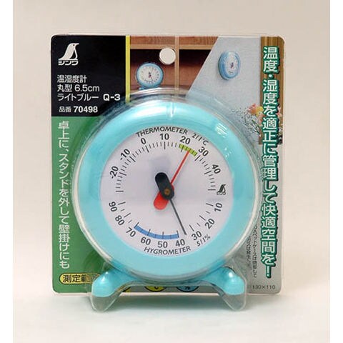 温湿度計 Q-3 丸型 6.5cmライトブルー 70498 温度計 湿度計 健康管理 省エネ ベビー用品 シンワ測定