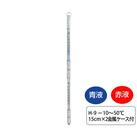 棒状温度計 H-9アルコール赤・青-10~50℃15cm×2金属ケース付 72581 温度測定 温度管理 地温 調理 料理 揚げ物用 天ぷら用 お菓子作り 湯せん スペック