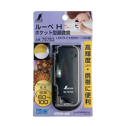虫眼鏡 ルーペ H ポケット型顕微鏡 LEDライト付 60~100倍 75753スペック