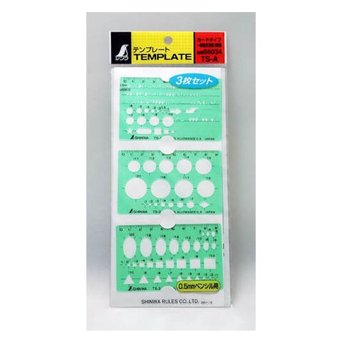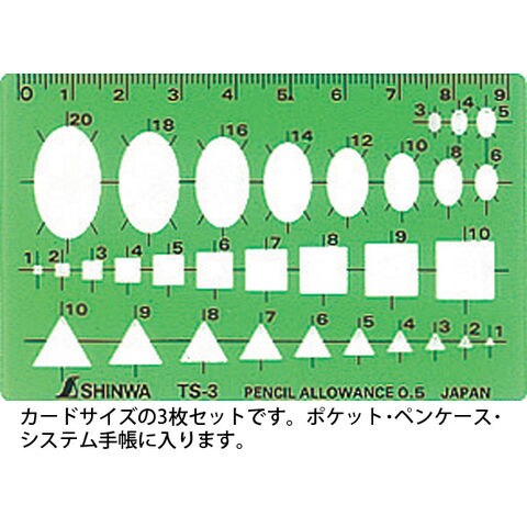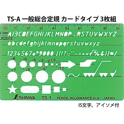 テンプレート TS-A 一般総合定規 カードタイプ 3枚組 66034 製図 設計 図面 シンワ測定