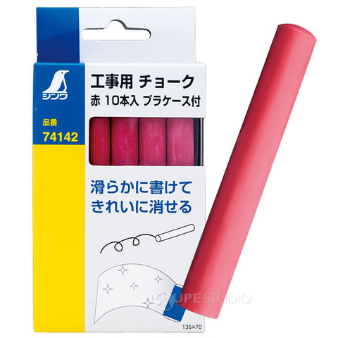 工事用チョーク 赤 10本入プラケース付 74142 シンワ測定 黒板 木 石 鉄 コンクリート 工事用 チョーク 業務用 シンワ測定