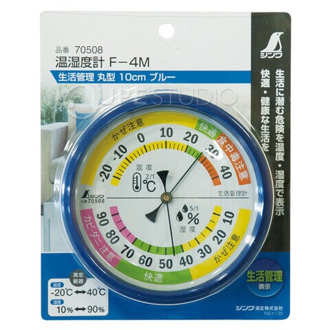 温湿度計 F-4M 生活管理 丸型 10cm ブルー 70508 シンワ測定 温度計 湿度計 健康管理 省エネ ベビー用品スペック